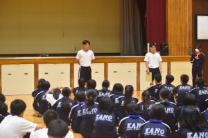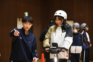 後半は、【働くことの意義】についての講話を聴きました。職場体験を通して学んだことにも、つながる講話内容に頷きながら聞き入っていました。また、質問コーナーでは挙手が止まらず…20分の質問時間が足りない…という事態が発生しましたが、とても意欲的に参加していました。 お礼の言葉、インタビューを担当した生徒も、堂々と自分の考えを言葉にしていました。 さらに、今回は4名の生徒が運営スタッフとしてC-walkとe-sportsの説明を担当し、みんなの体験をサポートしていました。とても良い体験をさせていただきました。貴重な体験を企画・運営してくださった茨城トヨタの皆様、ありがとうございました。