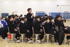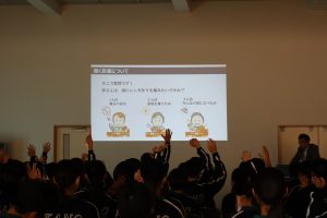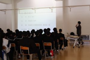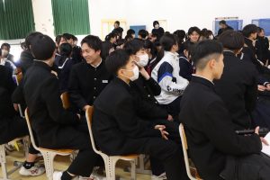グループワークも取り入れながら、考えを深めることができました。講話の後には、自ら疑問に思ったことを進んで質問する生徒もいました。とても有意義な時間となりました。