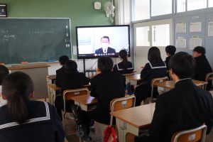 12日(金)の5時間目には、明治安田生命より講師の先生に来校いただき、2学年と3学年を対象に金融教育を実施しました。同じ収入でも保険に入っていないと実費での負担が増えてしまうなど、わかりやすい図と解説で『保険』の仕組みについて学びました。また、『お金を増やす』という観点から投資についても触れていました。 貯金をすることでお金は貯まりますが、ただ銀行に預けていても金利が低く、お金はあまり増えない。その分、お金に働いてもらう【投資】についてもお話されていました。しかし、必ず儲かるわけではなく、【ハイリスク ハイリターン】【ミドルリスク ミドルリターン】【ローリスク ローリターン】ということを強調されていました。今日のお話をしっかり【お金】とどう付き合うのか見極めて、将来にいかして欲しいと思います。 感想発表を担当した生徒は、当日の講演を聞き、その内容を端的にまとめ、自分の考えを堂々と伝えることができました。