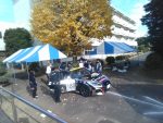 お忙しい中、来校いただいた講師の先生、サポートの方々、ありがとうございました。 本日、5~6時間目に茨城トヨタさん主催の『茨城ワクドキ出前授業くるま教室』に参加させていただきました。4種類のコンテンツが体育館と屋外にブースとして設置され、E班、F班、G班、H班に分かれて様々な体験活動をしました。 ①C-walkでは、体育館に設置されたコースを4km/hの速さで移動する次世代モビリティを体験することができました。 ※最初は怖がっていましたが、慣れてくるととても楽しそうに操作していました。 ②e-sportsでは、アクセルやブレーキの操作はもちろん。ハンドル操作をして160km/h近くを出しながらレースを体験しました。 ※着順を競ったり、コツを教えてもらったり、1位をとった生徒の周りでは歓声が上がっていました。もう一回やりたい!という生徒が多数! ③『MIRAI』では、水素と酸素の反応で生み出された電気をエネルギーに走行できる車(MIRAI)の説明と試乗をしました。 ※車から排出される、水を見ようとアスファルトにも寝そべるなど、興味津々でした。 ④『モータースポーツ』では、レースに特化した車の試乗を体験しました。 ※運転席のフィット感がすごいシート。地面に吸い付くような低い車体など、普段知っている車とは違う車に感動していました。