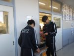 冬休み後授業再開から1週間、1年生はスキー学習の準備、2年生は3年生を送る会の準備、3年生は最後の三者面談を行っています。その中で、11月の学校運営協議会で決定したあいさつ標語の、のぼり旗が完成しました。来週月曜日に学校運営協議会委員のみなさんと一緒に行う「あいさつ運動」で全校生徒や地域の方にお披露目します。