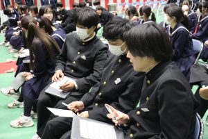 5・6校時に、アントラーズビジネスクラブによる職業講話が行われました。 1年生にとっては、自分たちの進路・キャリアについてじっくり考える初めての機会です。参加していただいた6つの企業の話を真剣に、食い入るように聞く姿も…。 自分たちの進路実現に向けて、今からできることを少しずつ、でも、確実に進めていこう!