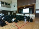 保護者のみなさま、地域のみなさま、1年間の教育活動にご協力いただきましてありがとうございました。 来年度もよろしくお願いいたします。 1、2年生がキャリアフォーラムを行いました。 入試のしくみやこれまでの進路実績など、具体的なお話がありました。ほとんどの生徒が、今の自分の進路希望と照らし合わせながら真剣に考えていました。