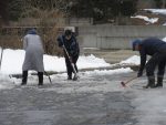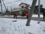 今日は、路面状況も落ち着いたので、多くの先生方と鹿島公民館の職員の方で通学路の雪かきをしました。かなり凍っており、氷を砕きながらの作業でした。それでもまだまだ、歩道にも雪が残っています。12日(木)の登校の際には十分足元に注意して来てください。