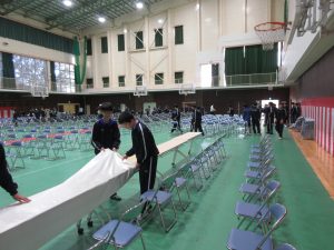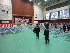 本日は、部活動ごとに入学式の会場作成を行いました。新2・3年生が丁寧に作業をしてくれたおかげで、すばらしい会場ができあがりました。