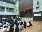 昼休みに全校集会を行いました。