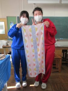 ©Keith Haring Foundation 美術部では、潮来collarsの茂木さんをお招きし、泥染め体験(板締め絞り)を行いました。 白い手ぬぐいに泥が原料の染料を刷毛や手でつけて染め上げます。 はじめに手ぬぐいを折ったり、木型をつけたりすることで、色が染まる部分と染まらない部分ができます。 とても素敵な作品に仕上がりました。
