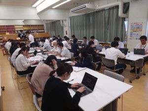 本日、生徒指導訪問が行われました。 5校時の授業では、生徒の表情がよく主体的に活動する姿が見られました。 放課後の事例検討では、教職員がグループに分かれ、ICTを活用して意見を交換していました。