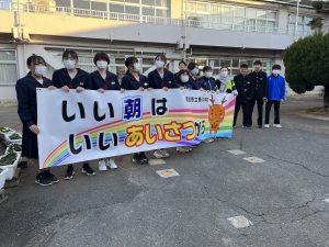 生活委員会の呼びかけで、鹿島中全クラスが順番であいさつ運動を行うことになりました。