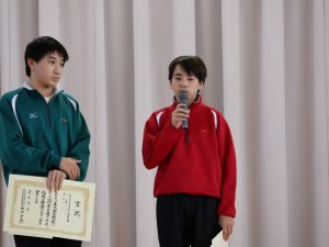 先日行われた県東地区新人戦の結果報告と各部が県大会に向けた抱負を発表しました。