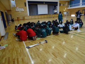 来週にスキー学習を控え、1学年へ事前指導がありました。しおりを見ながら、注意事項や係ごとの仕事の確認、「みんな盛り上がってるかな~」の確認などがありました。今年は雪の量は心配がなさそうです。体調に気をつけて楽しいスキー学習にしましょう!