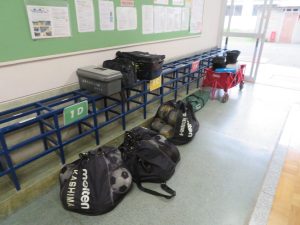 放課後の昇降口の様子です。校外練習の用意でしょうか。各部活とも本日の活動後にきちんと用具を準備して帰っていきました。良いことがありますように。