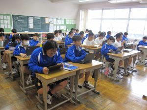本日朝読書の時間を利用して、朝スタが行われました。 生徒はChromebookで国語と数学の問題に取り組みました。