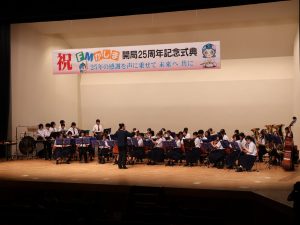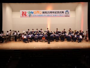 地域の情報を支えているエフエムかしまの開局25周年の記念式典が行われ、本校の吹奏楽部が参加しました。3年生が一線から退き、初めての1,2年生のみの演奏。練習時間も少ない中ですが、無事に演奏を終えることができました。