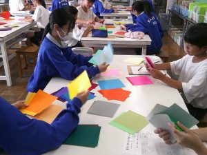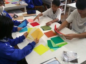 本日美術科の授業で「いろがみ」を使った色の学習をしました。