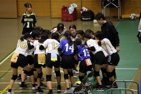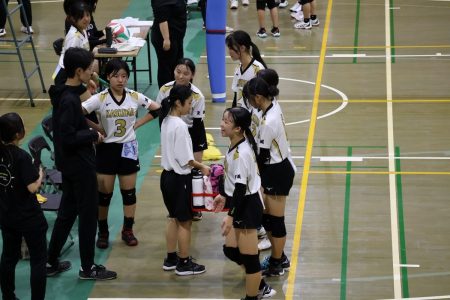 今週も県東地区新人体育大会の競技が予定されています。本日は、女子バレーボール部の一回戦が行われました。1セット目は初戦の緊張もあって、いつものプレーができませんでしたが、2,3セット目は徐々に自分たちのプレーもできるようになり、最終的には接戦となりましたが勝利することができました。明日も「自分を信じ、仲間を信じ、笑顔でプレー」をしてもらえればと思います。