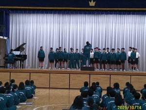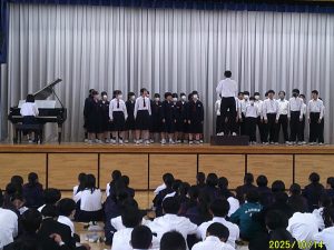 本日は令和7年度後期始業式が行われました。さらに、鹿華祭のための二学年プレコンが行われました。来週の本番では素晴らしい合唱を期待しています。