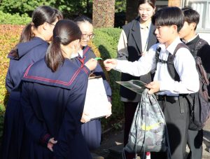 昨日からボランティア委員会による「緑の募金活動」が行われています。 委員の呼びかけに賛同して、多くの生徒や教職員が募金に協力してくれており、学校全体が温かい雰囲気に包まれています。集まった募金は、地域の緑化活動や森林保全のために役立てられます。 「小さな一歩が大きな力に」。最終日は20日(月)となっておりますので、引き続き、皆さまのご協力をお願いいたします。