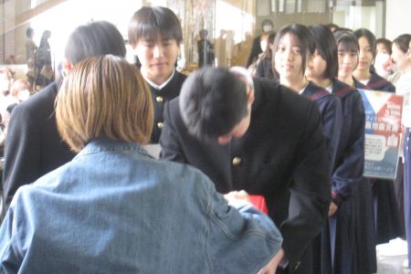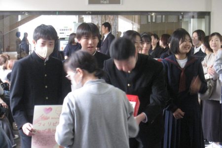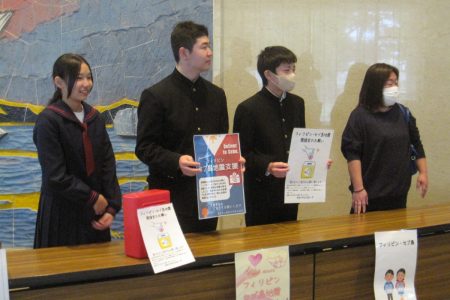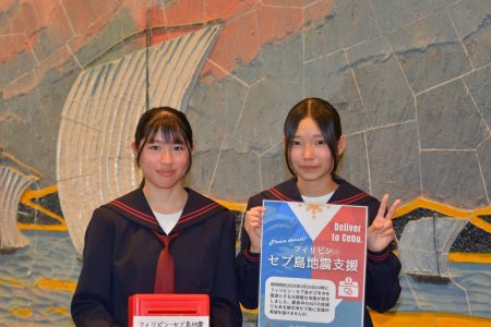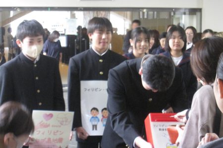 受付で実施した生徒会役員とPTA役員による「フィリピン・セブ島沖地震被災者支援募金」では、多大なご協力をいただき誠にありがとうございました。