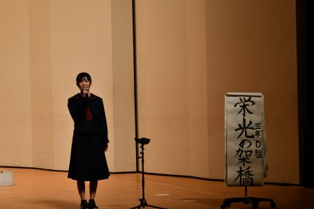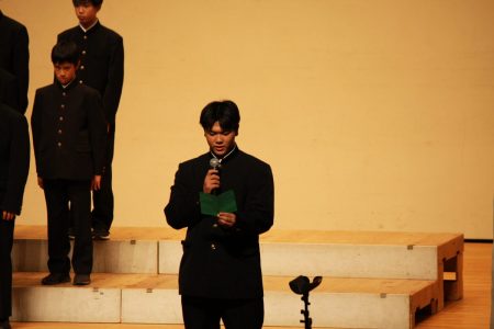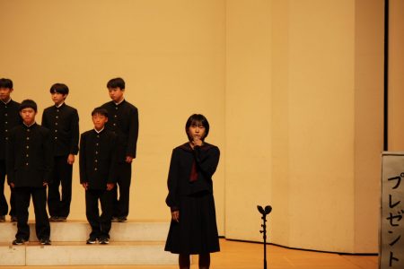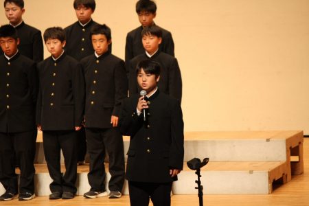 【三年生】最後の合唱にふさわしく、圧倒的な集中力と情熱で会場を魅了しました。歌詞に込めた思いを伝えようとする姿から、これまでの学校生活の歩みと仲間への感謝の気持ちが伝わってきました。