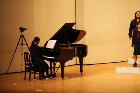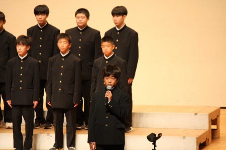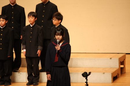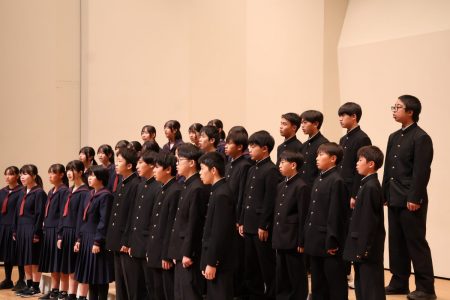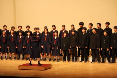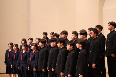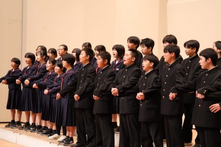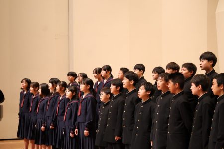 【一年生】中学生として初めての合唱祭。緊張の中にも、仲間と心を合わせようとするまっすぐな姿勢が光りました。素直で一生懸命な歌声が、聴く人の心を温かく包みました。