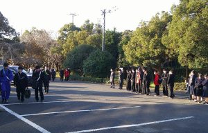 今月12日(水)よりあいさつ運動を実施しています。今朝は2年Ⅽ組が担当でした。たくさんの人たちが参加しました。