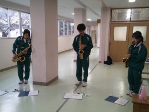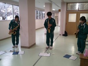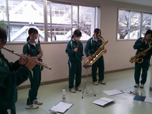 先月、アンサンブルコンテスト県東地区大会がありました。もう一度、吹奏楽部の保護者の方々に聴いていただきたく、発表会を開くことにしました。冬になって、練習時間も30分足らずですが、少しでも合奏したいと練習しています。