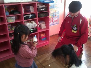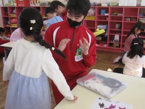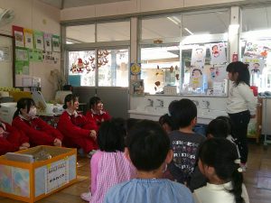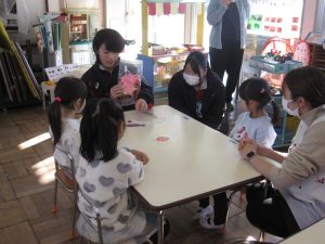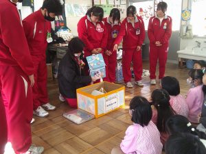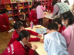 本日 3年生の家庭科の授業の一環で三笠幼稚園の協力を得て幼稚園実習をしてきました。