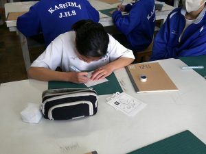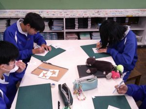 1学年は現在美術科で「カッティング」に挑戦しています。安全に気を付けつつ、カッターを巧みに使用して型を切り抜きます。型の種類には難易度のランクがありましたが、難しい型に挑戦する生徒が非常に多かったです。その分完成した時の達成感はひとしおですよね。みなさん、丁寧にカッティングができたでしょうか?