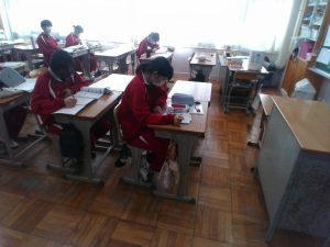 1年生はスキー学習に向けて、実行委員が集まって話し合っていました。2年生は郷土検定に向けて練習していました。3年生は受験に向け熱心に勉強に取り組んでいました。生徒会は新入生歓迎会に向けて打ち合わせをしていました。各学年、有意義に昼休みを過ごしています。