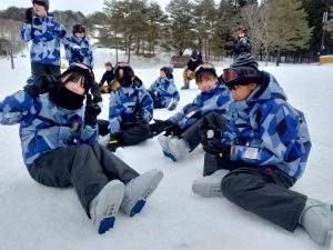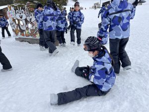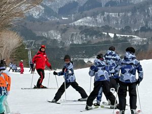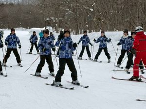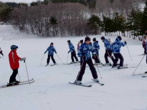 2日目のレッスンがまもなく終了します。スキー初心者がほとんどでしたが、本日のレッスンでだいぶ上達しました。