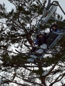 スキー学習2日目、午前中の様子です。今日はリフトに乗るグループが増えました。 |