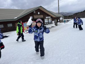 2日目のレッスンがまもなく終了します。スキー初心者がほとんどでしたが、本日のレッスンでだいぶ上達しました。 このあとホテルに戻ります。 スキー学習2日目。 なかなかホームページがアップできず申し訳ありません。 先ほど昼食のカレーを食べて、午後の部がスタートしました。昼食後は雪遊びを楽しみました。