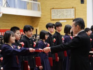 本日は、令和7年度第59回卒業証書授与式が挙行されました。大変素晴らしい式で、卒業生も良い表情で卒業することができました。3年生がいなくなるのは寂しいですが、1・2年生が伝統を引き継ぎより良い鹿島中学校にしていきます。