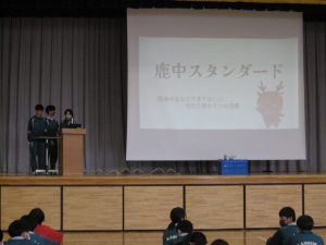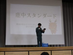 本日、スマイルタイムでは、生徒会による「鹿中スタンダード」が発表されました。