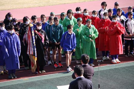 県東地区大会で好成績を収めた男女駅伝チームが、笠松運動公園を舞台に県大会に挑みました。結果は男子が総合16位。そして女子は総合2位となり、関東大会出場が決まりました。選手一人一人が自分の持てる力を出し切ろうとする姿に感動し、たすきを繋ぐ姿に感動し、選手に大きな声で送るサポートメンバーの姿に感動しました。鹿島中の代表として、男女とも誇らしい姿でした。お疲れさまでした。