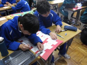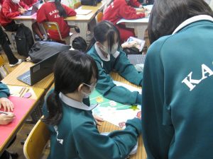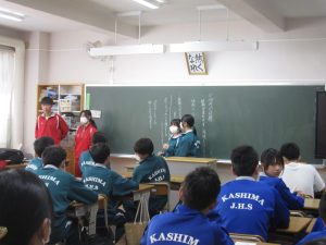 鹿島中学校では、生徒が主体となり取り組み、対話的な活動を行っています。