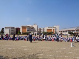 体育の時間にクラスごとに分かれて楽しく遊びました。ケイドロやドッジボールをしました。