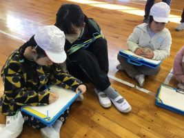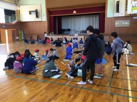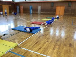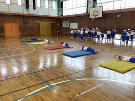 1年生も楽しく遊ぶことができました。 順番を守り、ライオン歩きやアザラシなどをしたり、マットの片付けをしたりしました。 みんな楽しそうに取り組んでいました。 ライオン歩き
