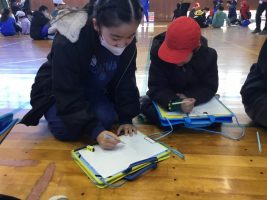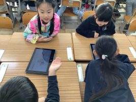 新しい漢字の練習をデジタル教材を使用して学習しました。 子ども達は、書き順を確かめながら丁寧に練習をしました。