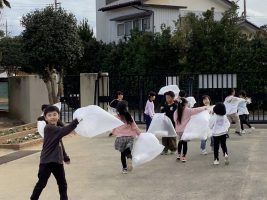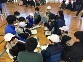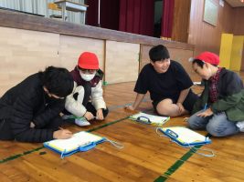図画工作科「ビー玉大冒険!」の学習でつくった作品を持って、三笠幼稚園、美空野保育園、三笠小1年生教室へ行きました。自分の作品の工夫したところをもとに、遊び方を優しく教えたり、「上手だね!」と褒めたりして、園児・児童と関わっていました。5年生にとってもよい学習になりました。