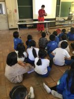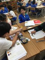 すてきなお友達ができそうです。 英語のでは、ALTといっしょに、楽しく学習しています。 ジェスチャーを交えて、大盛り上がりです。 また、今週からは、実習生も一緒に学習に取り組んでいます。