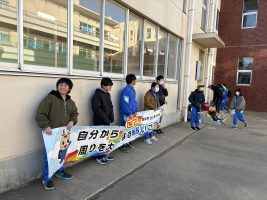 低学年のお手本になるように、元気な声で挨拶を行います。