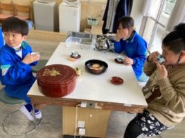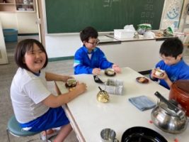 「春風をたどって」の物語の続きを考え、友達とノートを交換して読み合っています。 ![]() ![]() ![]() 自分の考えを友達に伝え、学びを深めています。 ![]() ![]() ![]() 5×10の計算の仕方を考えています。 ![]() ![]() ![]() 「いただきます。」 今日から1年生も給食が始まりました。小学生になってはじめての給食。パンにハンバーグ。牛乳とサラダ。残さず食べられた児童もいました。牛乳パックもきちんと折りたたんでお片付け。よく食べて、元気な心と体に。