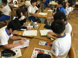 いよいよ修学旅行が迫ってきました。 班別行動の計画を、みんなで調べながら立てています。 自分の希望通りにいかないことももちろんありますが、相手を思いやりながら、譲り合って計画を立てようと頑張って話し合っています。 楽しい旅行になりますように!