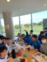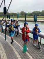午前中の雨が少しずつ上がり、カヌー体験ができたクラスもありました。雨、風の影響で残念ながらできなかったクラスも、いろいろなゲームで楽しみました。 お昼は今日もバイキング!疲れが見えてきそうなこの時間でも、元気いっぱい美味しいご飯を食べました。 二日間の感謝の気持ちを込めて、奉仕作業として草抜きを行いました。 退所式では、施設の方に感謝の気持ちを実行委員が述べました。この宿泊学習で学んだたくさんのことを、これからの生活に活かしてほしいですね。