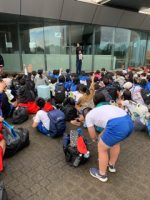 無事小見川少年自然の家に着きました。 入所式が終わり、これからウォークラリーです。