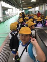 いよいよ出発です。「いってきます。」1年生の先生もみおくりにきてくれました。
