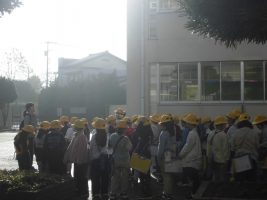 雨上がりの朝もやの中、3年生が消防署に向けて出発しました。社会科で地域で働く人について学んでいます。大きな収穫がありますように。 |
