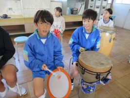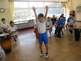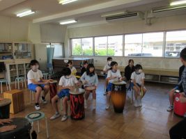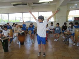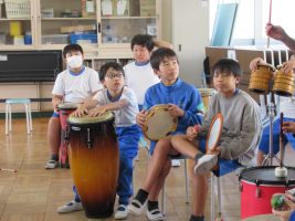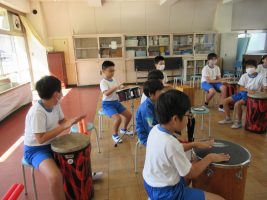 音楽の時間に、ドラムサークルWingBeast代表の本沢さんをゲストティーチャーにお招きし、たくさんの打楽器を用いてリズム学習をしました。自分が選んだ楽器で、本沢さんのリズムを追いかけたり、友達のつくったリズムを打ったりして楽しみました。